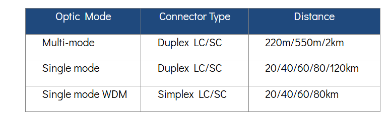 PLANET GT-80x gigabit media converter series extends communication distance with highly Gigabit performance via fiber optic cable. The GT-80x series provides media conversion between 10/100/1000BASE-T and 1000BASE-SX/LX interfaces for various fiber optic applications. The available fiber interfaces are shown below: